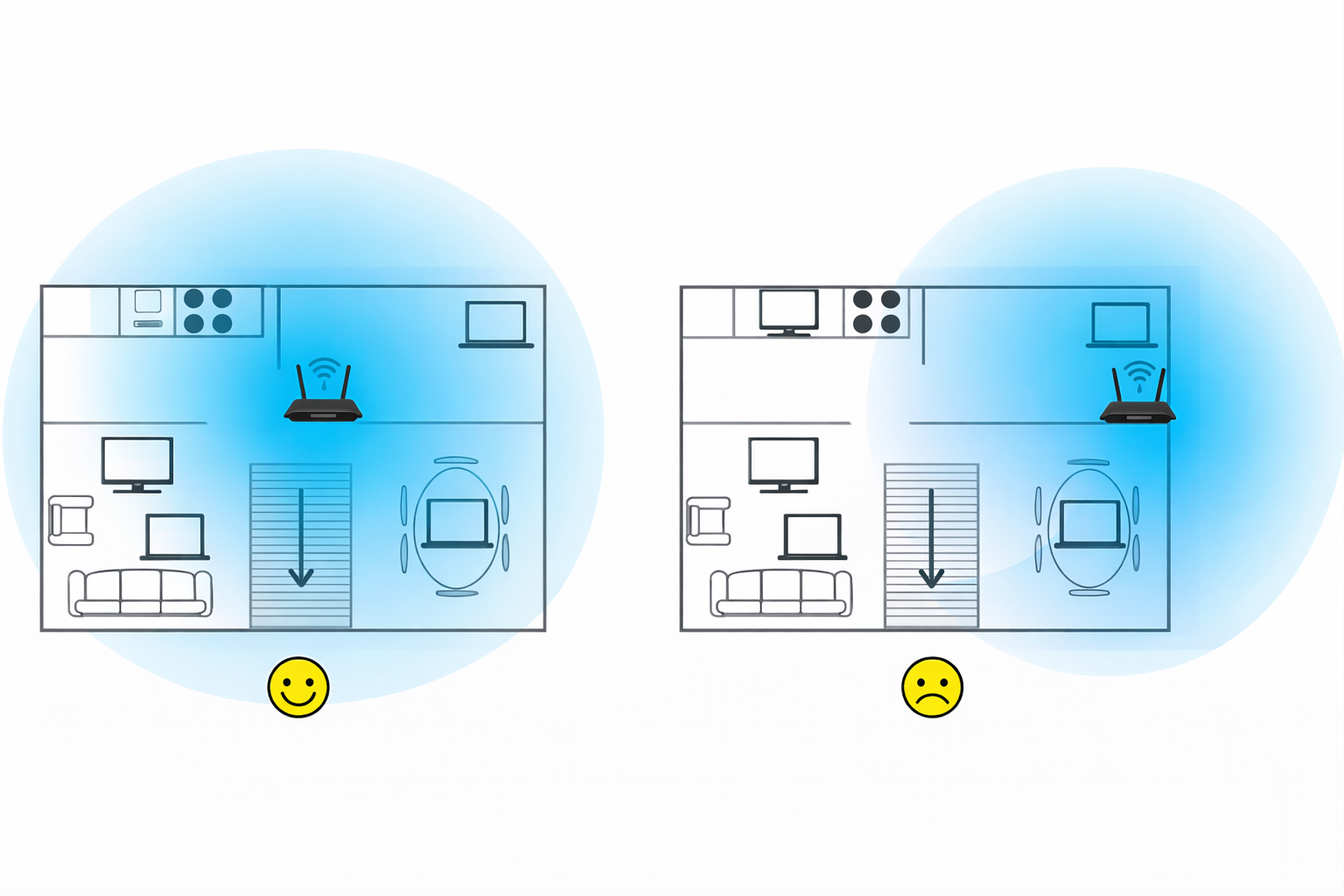 5 GHz hızlıdır ama menzili düşüktür. Uzak odalarda genelde çekmez.