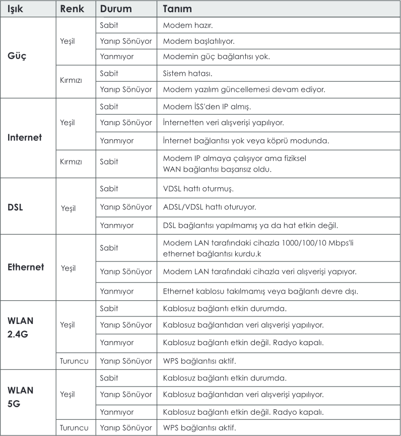 🔍 1. MODEM IŞIKLARINI KONTROL EDİN